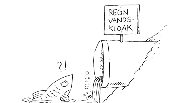Med 'Hjælp Fisken'-kampagnen sætter vi fokus på, at det vand, der løber fra tagrender, indkørsler og videre vejristen ofte løber direkte - helt urenset - til vandløb, søer og fjorden. Det er tilfældet hjemme hos dig, hvis du bor i et separatkloakeret område.