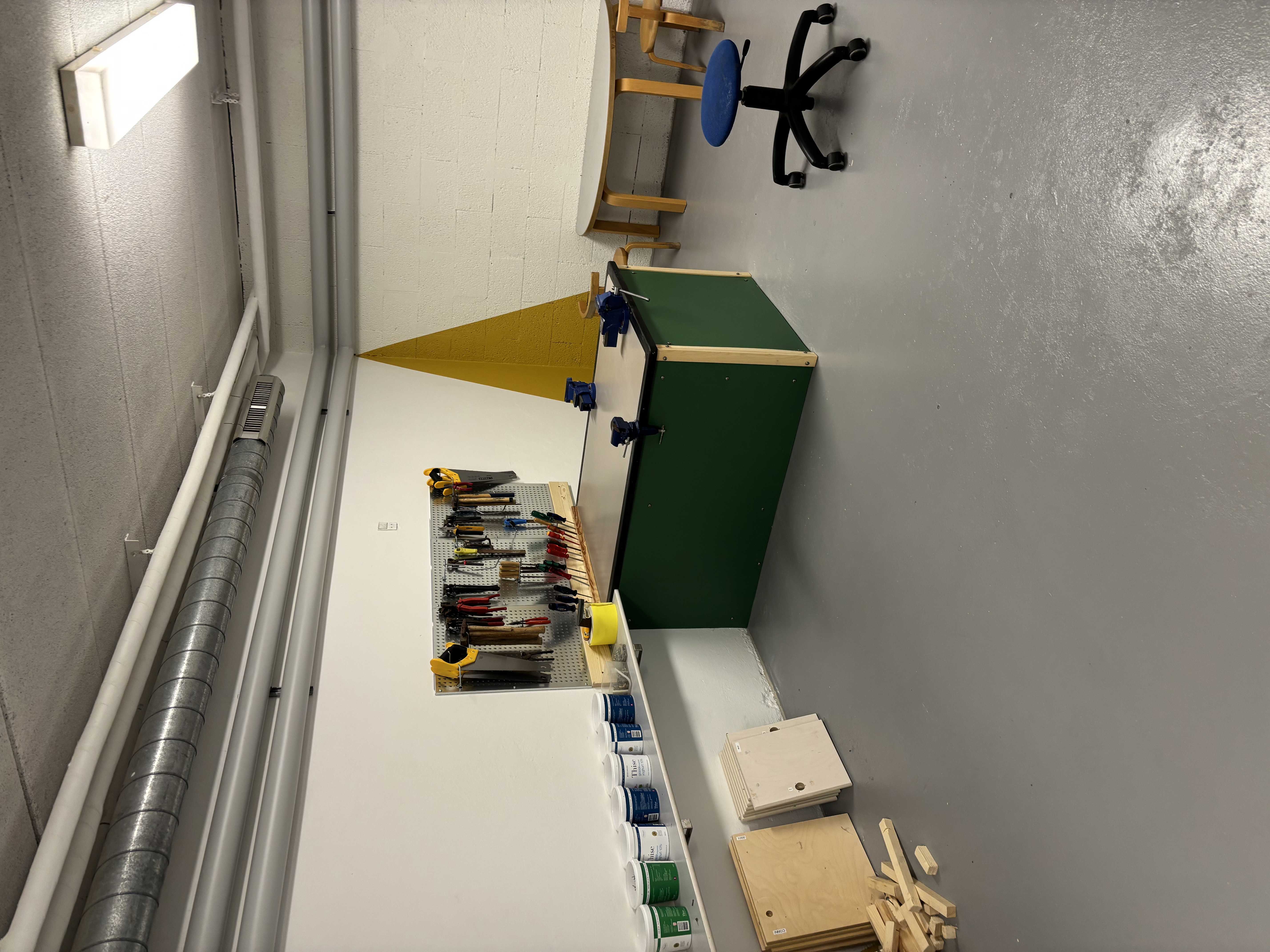 • et værksted, hvor hænderne skaber, bygger og eksperimenterer med alt fra træ til genbrugsmaterialer