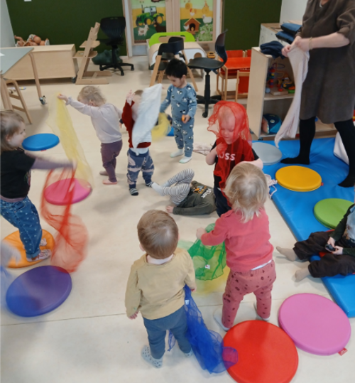 Selvom Vildrosen er et stort hus, føles det trygt, nærværende og imødekommende. Vi mødes på kryds og tværs i huset – til leg, sang, ture eller bare fordi vi ikke kan lade være. Det giver børnene både trygge rutiner og masser af nye venskaber.