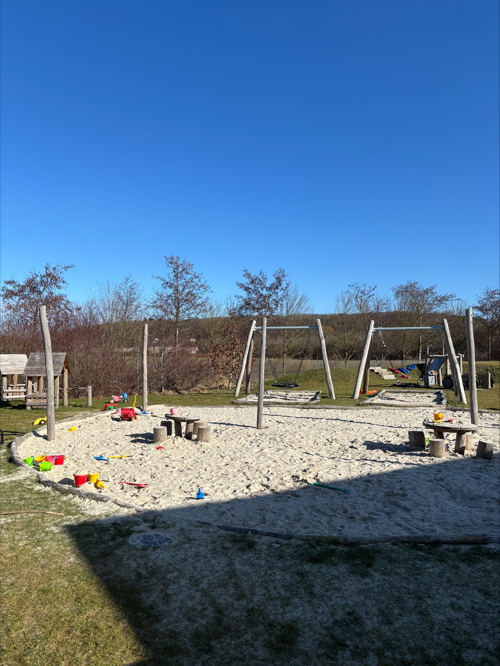 Vildrosen har to indbydende legepladser – et sted hvor fantasi og mudderpøl-magi går hånd i hånd. Her kan man: