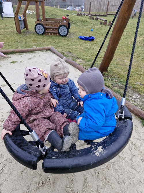 Udenfor låner vi også verden som legeplads. På vores små gåben eller i Vildrosens ladcykler og klapvogne tager vi ud i de skønne naturomgivelser, der ligger lige om hjørnet. Her finder vi nye veje, nye udsigter og altid noget spændende, man kan kigge på, røre ved eller undre sig over.