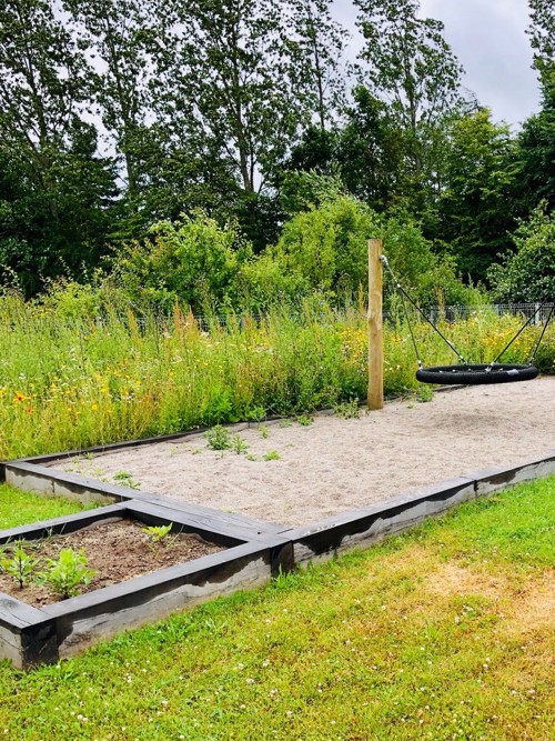 Legehuset har en skøn legeplads, der er indrettet med vilde blomster, scooterbane, gynger og meget mere. Dagtilbuddet har tre gode ladcykler, som vuggestuen ofte tager afsted på tur i.