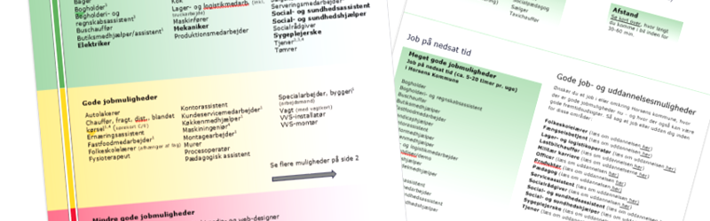 Områder med meget gode (grønt område), gode (gult område) og mindre gode jobmuligheder (rødt område)