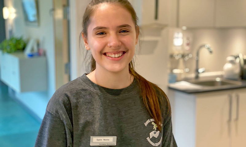 Noma Gashi går i 9. klasse på Lundskolen i Horsens Kommune. Hver onsdag og torsdag tjekker hun ind på Tamdrupcentret efter skole for at spille spil, gå ture, læse højt eller bare hyggesnakke med beboerne.