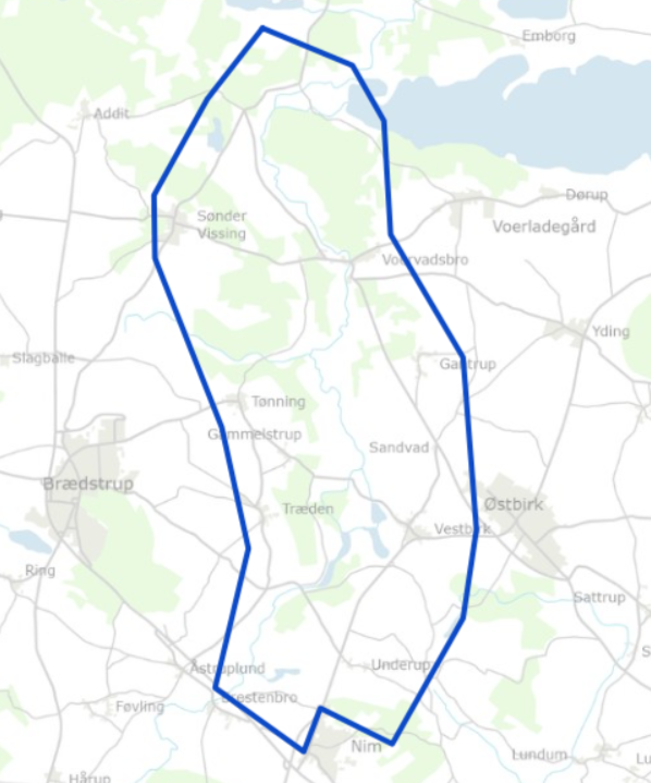 Gudenåen danner rygraden, og landsbyerne danner rammen for den foreløbige afgrænsning.